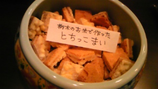 とちっこまい 2009.05.17 | 料理通信 冨士屋の隠れた人気商品「とちっこまい」です。 名前のとおり、栃木産のコシヒカリ米で作ったお菓子♪ お米のお菓子ってお煎餅が定番だと思いますが・・・ この商品は、ウエハースのような軽い仕上がりとなっています。 和風なんだけど、洋風・・・秘かに人気上昇中です!! 大人買いされるお客様が続出中な為、売り切れの際はご了承ください。 ◆とちっこまい 10袋入り 630円 塩原温泉 冨士屋旅館 宏美&ぼー